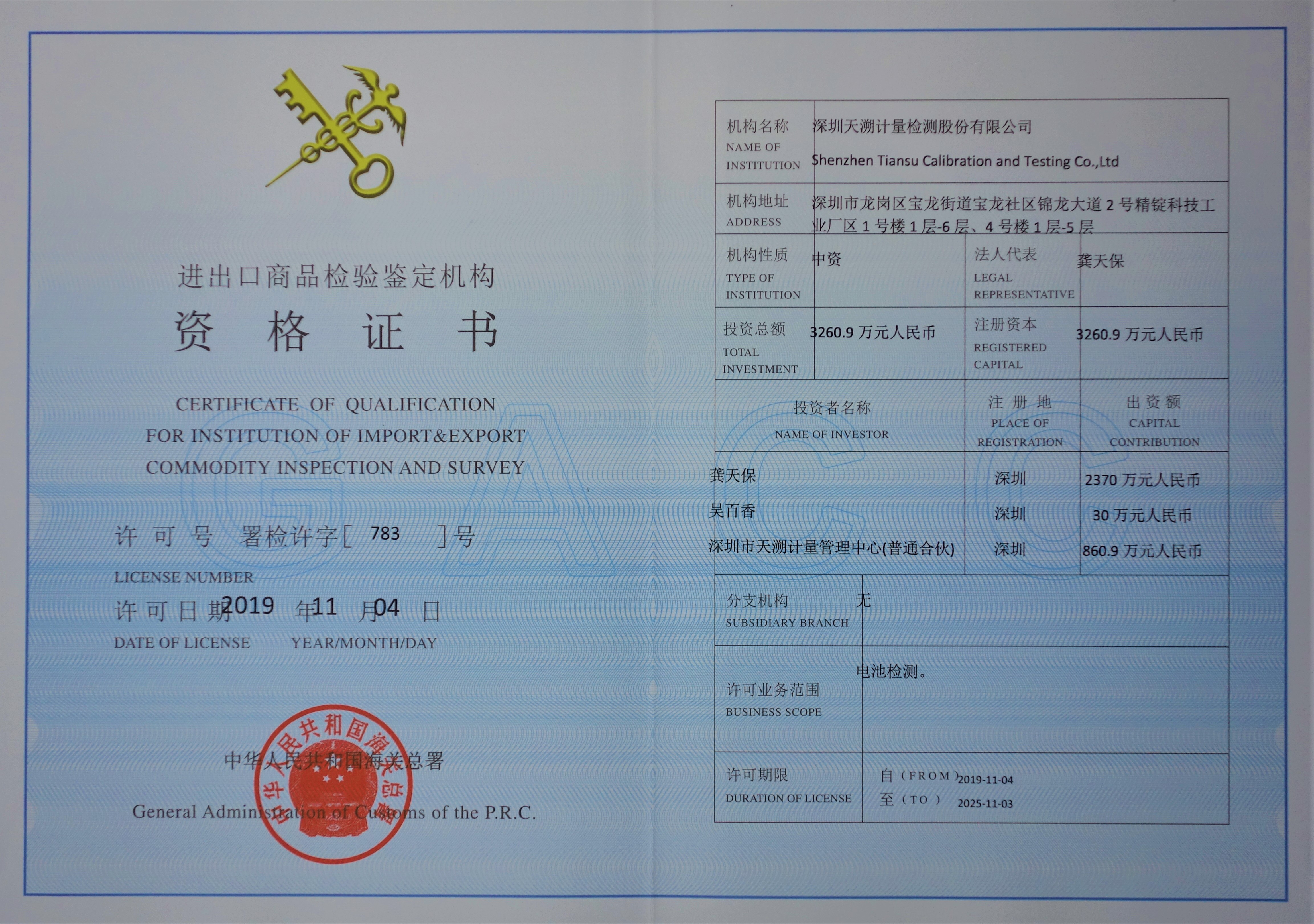 檢驗檢測認定證書